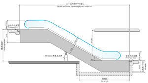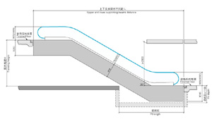 | Modelo | H (mm) Elevação | (m/s) Velocidade | (per./h) Capacidade | (°) inclinação | Nº de degraus horizontais | (Kw) Potência do motor | A (mm) | B (mm) | C (mm) | D (mm) |