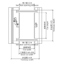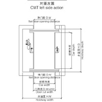 | (kg) Capacidade | (m/s) Velocidade | (mm) Tamanho efectivo do elevador | D.W (mm) Tamanho efectivo da porta | (mm) Dimensões da via de elevação | Rácio de tracção | |||